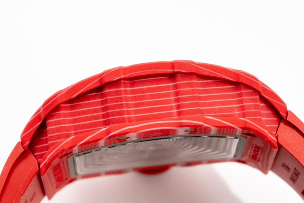 APS工場は、リシャール・ミル スーパークローンの製造において、常に本物に迫るクオリティを追求しています。このrm35-02 スーパークローンのケース素材には、NTPTカーボンファイバーを採用しています。画像で確認できるように、粗めの独特な花紋パターンが特徴で、従来のrm055モデルよりもワイルドな印象を与えます。この素材は極めて軽量でありながら、耐衝撃性に優れ、高強度運動時の信頼性を高めています。rm35-02 N級品として、APS工場のこの選択は、所有者の日常をよりアクティブにサポートするポイントです。