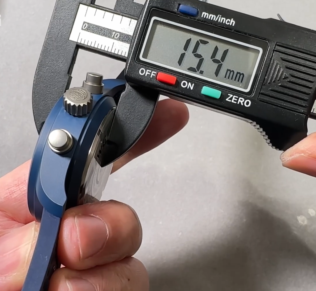 - 純正と同等のサイズ感: 実測値でケース径は41.9mm、厚さは15.4mmとなっており、正品のプロポーション(厚さ約15.5mm)に極めて近いサイズを実現しています。