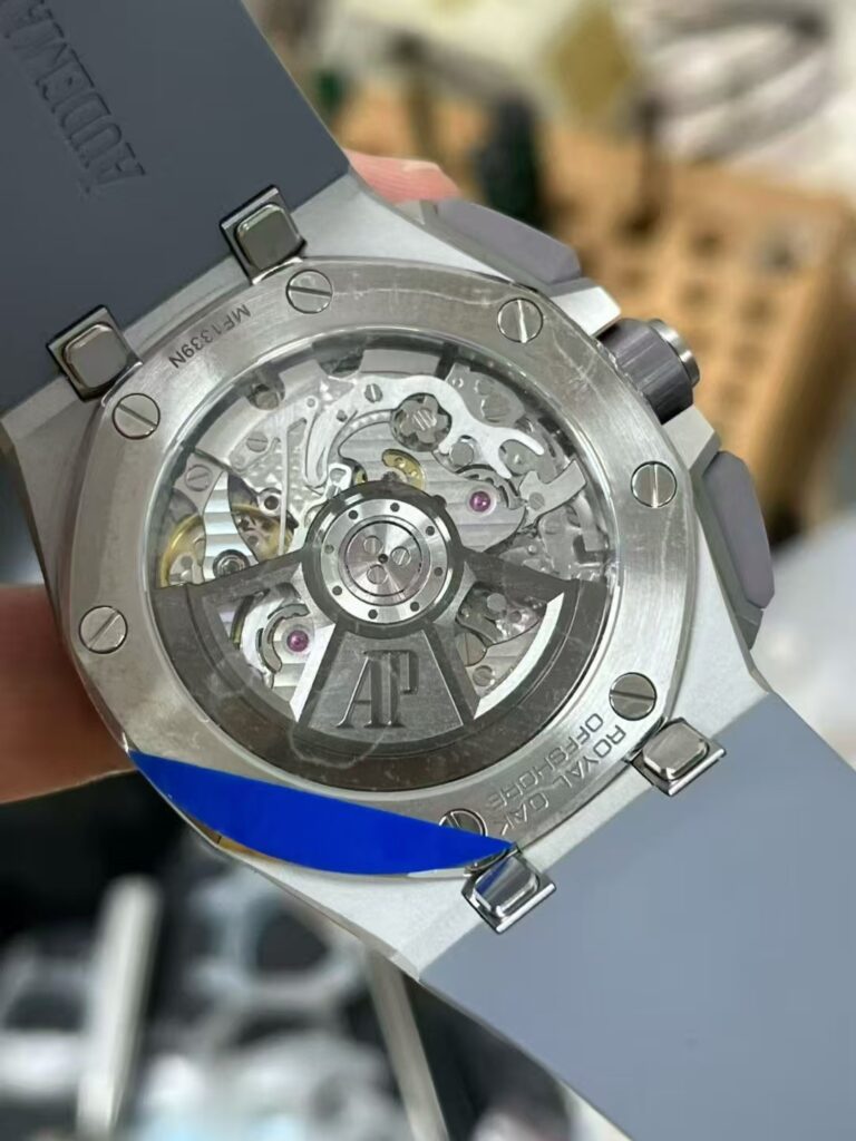 DDF工場は、フリースプラングバランスムーブメントを搭載したレプリカを業界で初めて量産し、多くの注目を集めました。しかし、DDFのAP 26240モデルを詳しく見てみると、バランスホイールにウェイトがなく、精度調整が極めて困難という大きな問題点があります。これにより、長期的な安定性が損なわれやすく、価格がAPSと同等レベルであることを考えると、購入はおすすめできません。実際、DDF版の写真をチェックしても、調整のしにくさが潜在的なリスクとして浮上します。